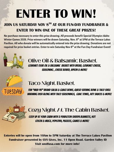 Join the fun at the Special Olympics Idaho 2026 Winter Regional Games! This family-friendly event will be held on Saturday, January 31st 2026 at Terrace Lakes Resort in Garden Valley.